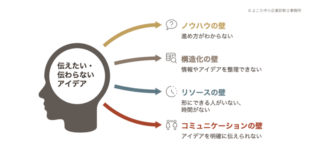 - アイデアを明確に伝えられない・伝わらない(コミュニケーションの壁)