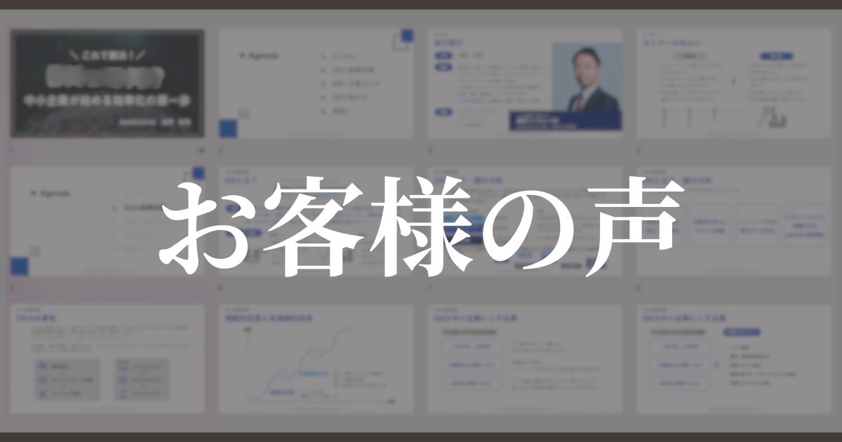 今回は、DXに関するセミナーに登壇されるとのことで、セミナー資料のブラッシュアップをご依頼いただきました。